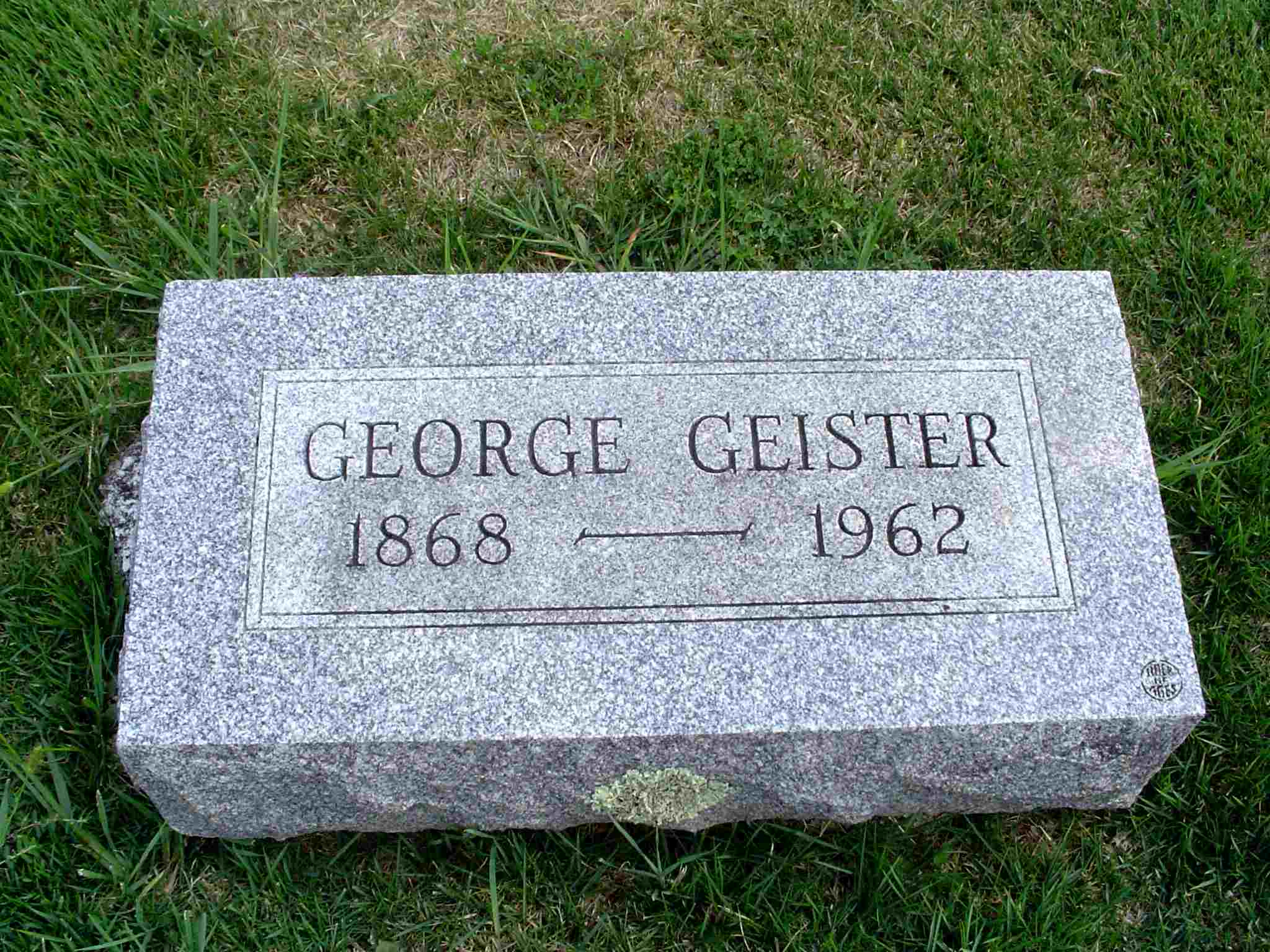 | GEISTER, George | 1868 | 1962 | Research Note: Son of Adam Geister and Fredrika Scheihing. - Geister Plot - Another Photo | Census Phyllis Long Photo Donna Cooper Photo Jay Trace |