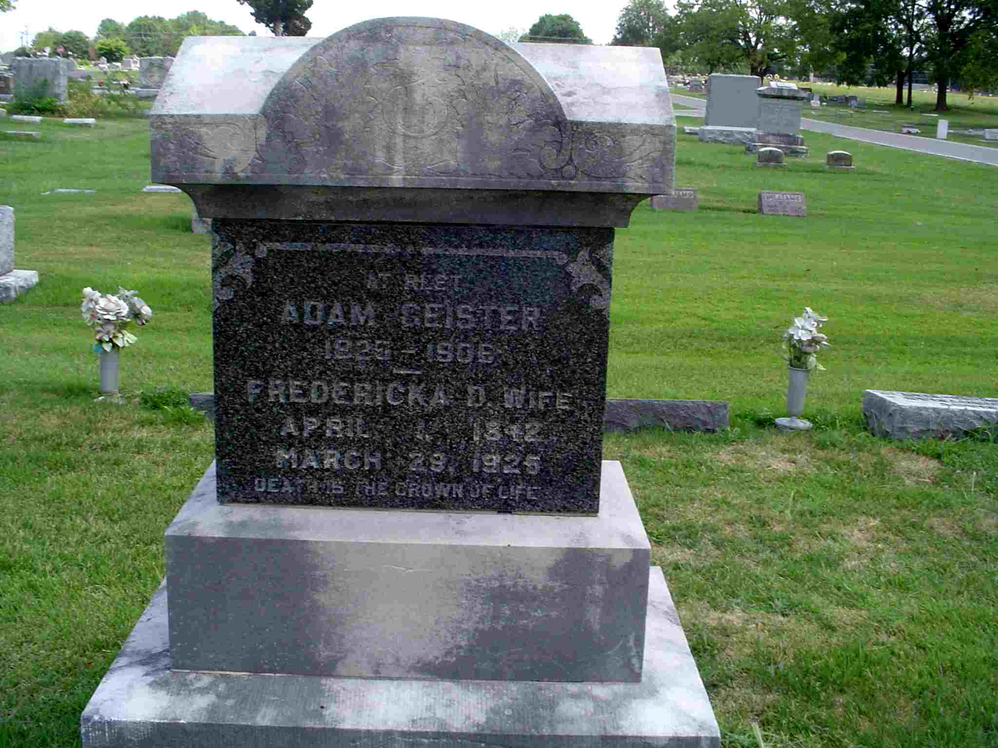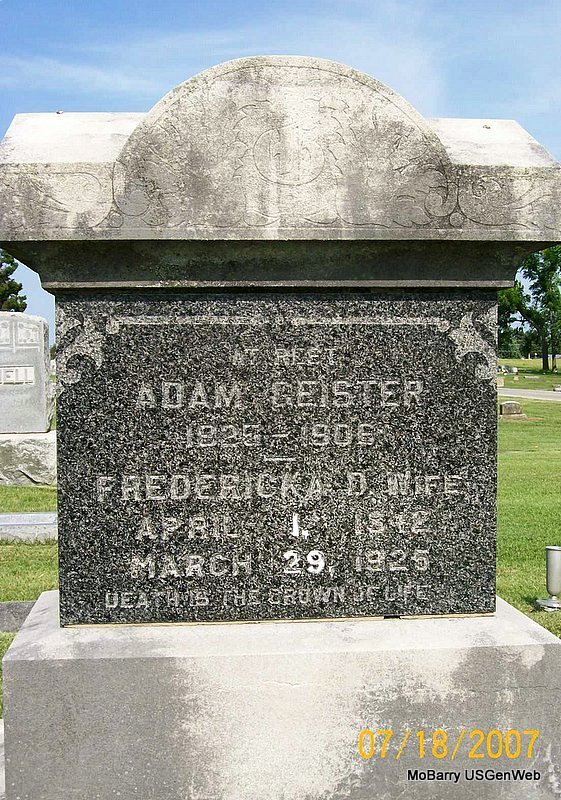 SSW: Fredericka D. - Research Note: Immigrated to U. S. in 1851. Civil War Veteran,. Enlisted in Co. A, Union Home Guard Infantry Regiment of Missouri. - Geister Plot - Another Photo - Another Photo | Immigration Records Civil War Records Phyllis Long Photo Donna Cooper Photos Jay Trace |