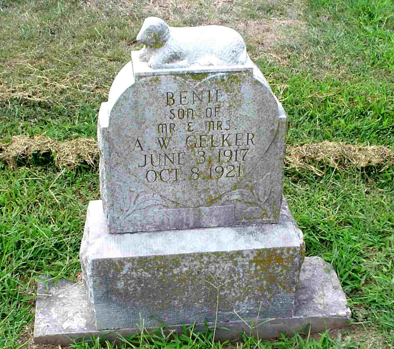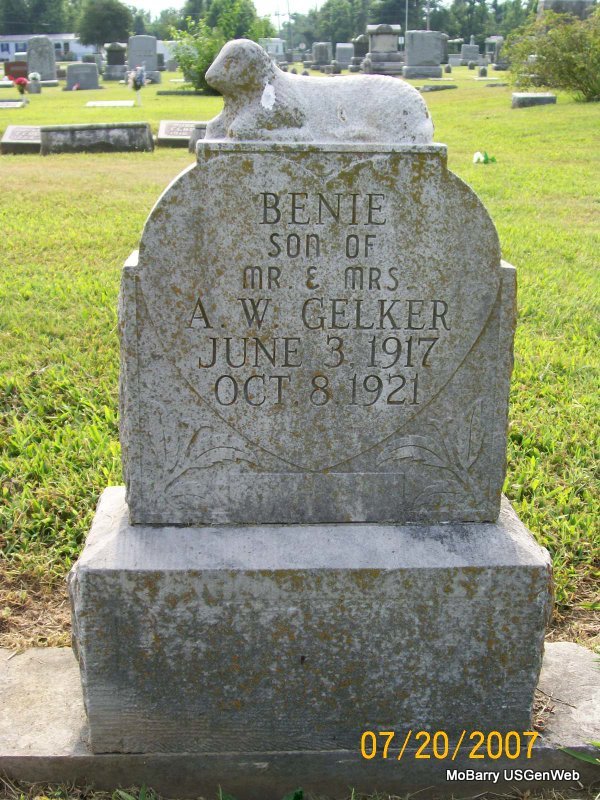 Inscription: "Son of Mr. and Mrs. A. W. Gelker" - Research Note: According to his death certificate he was age 4 years, 4 months and 5 days old at the time of her death. The cause of death was given as diphtheria; Spanish influenza. His father was listed as A. W. Gelker, born Lawrence Co., MO and his mother as Rose Price, born Ozark, MO. A. W. Gelker, Monett, MO was the informant. - Death Certificate Number: 25207 - Another Photo | Photo Donna Cooper Death Certificate Diana (Anderson) Cope Photo Jay Trace |