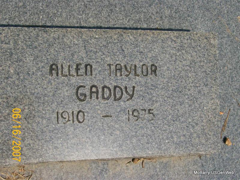 | GADDY, Allen Taylor | May 21, 1910 Barry Co., MO |