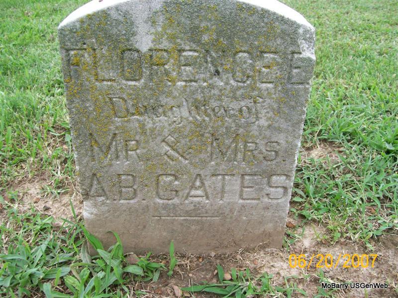 Inscription: "Daughter of Mr. and Mrs. A. B. Gates" - Research Note: Her death certificate reads that her father was Arthur Bellmer Gates, born Omaha, NE and her mother Alice Gates, born Saginaw, MI. The cause of death was given as premature birth. Arthur B. Gates, Monett, MO, was the informant. | Death Certificate Donna Cooper Photo Jay Trace |
