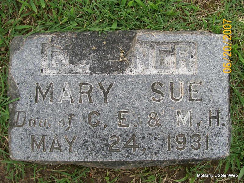 Inscription: "Dau. of C. E. and M. H." - Research Note: Callaway Funeral Home records read that this person was stillborn and that her father was Charles Edward Gardner, born Carroll Co., MO, and her mother was Mary Helen Harter born Cowgill, MO. | Callaway Funeral Home Donna Cooper Photo Jay Trace |