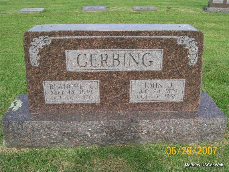 SSW: Blanche L. - Research Note: He was a RR engineer. Son of Conrad Gerbing and Ursula Hemmerling. His wife was Blanche and she was the informant on the death certificate. - 1910 Census, Pierce, Lawrence, Missouri - His wife is Emma. | Death Certificate Census Phyllis Long Photo Jay Trace |