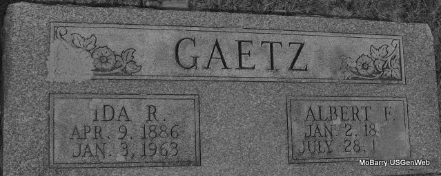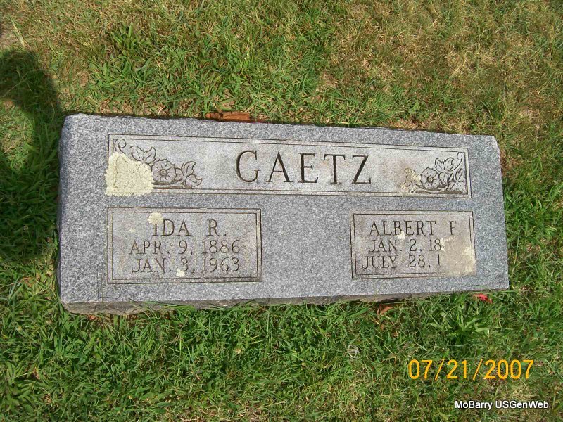| GAETZ, Ida R. (STEBLER) | Apr. 9, 1886 Barry Co., MO |