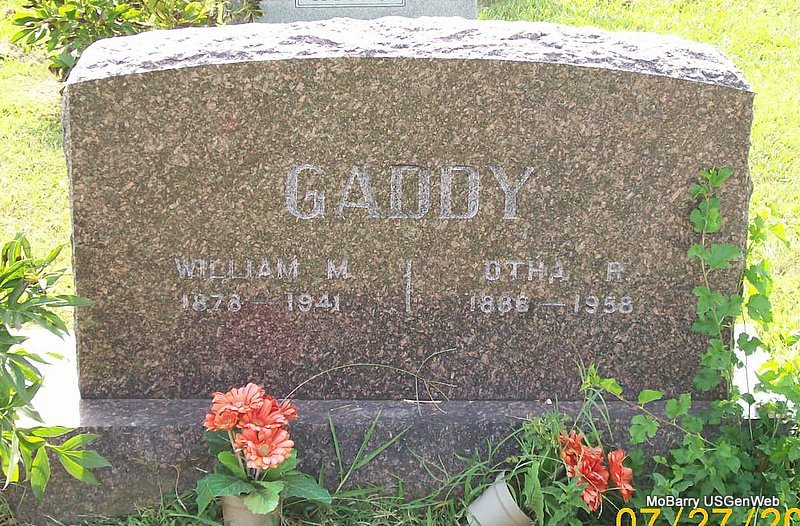 Research Note: He is buried in the Old Section, Block 6, Lot 3, Grave 3 and the lot owner was Robert Gaddy. Funeral home is given as Ralph Thieme of Springfield, MO. Son of William Monroe Gaddy and Otha R'Bell Garner. Married Delma Goldween Lasiter. | IOOF Log Book Census Phyllis Long Photo Jay Trace |