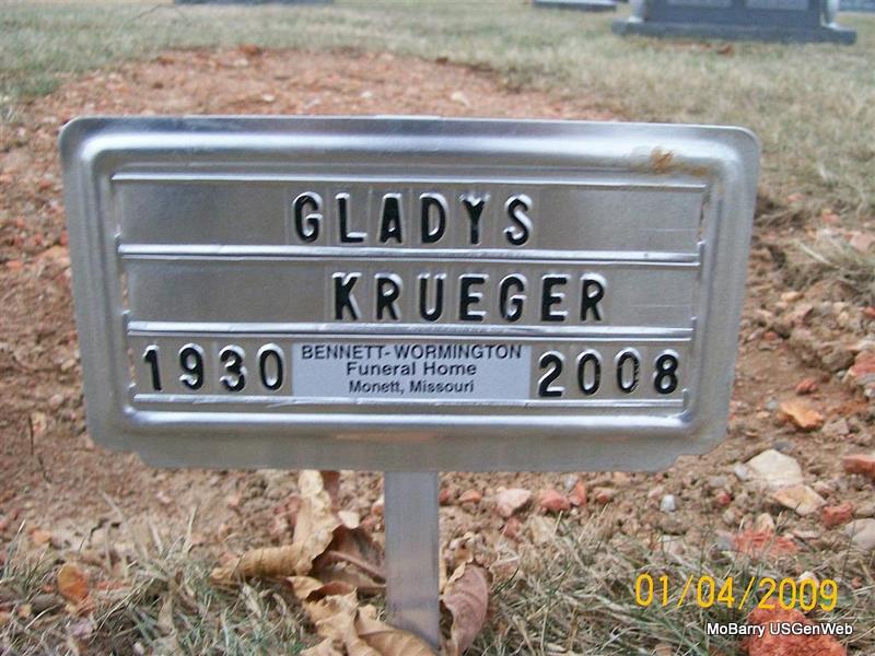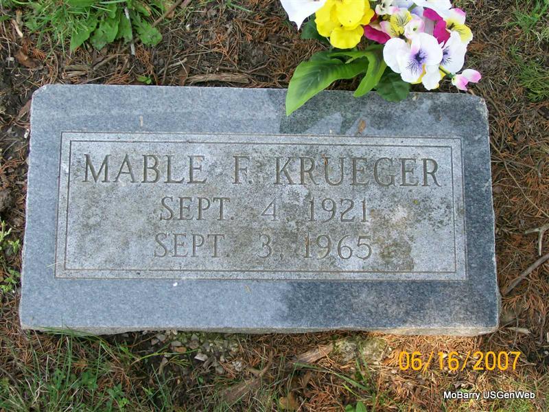 | KRUEGER, Mabel Frances (GULICK) | Sept. 4, 1921 Sarcoxie, MO |