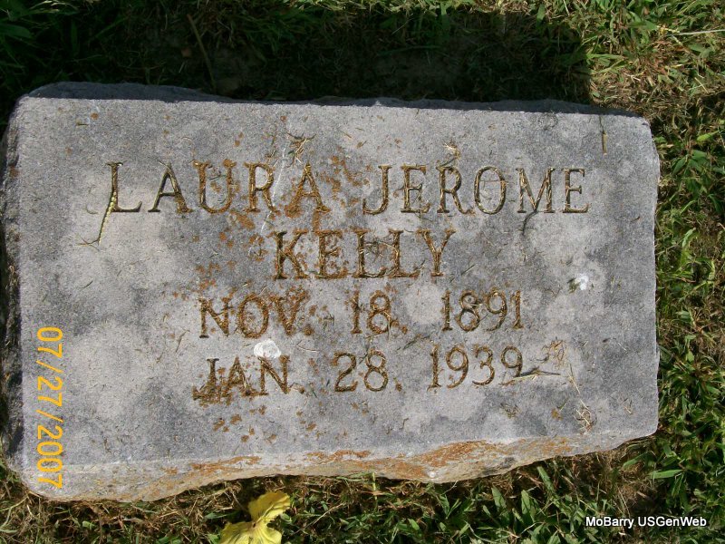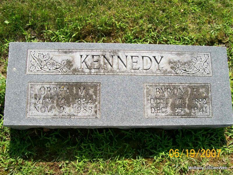 SSW: Ada - Research Note: His stone has 1870 but his death certificate has a more exact date of June 2, 1869. He worked for the Frisco Railroad. His father was given as James Kelley, born in Ireland and his mother as Sarah McIntruff, born in VA. He died from the effects of carcinoma of the face, primarily in the jaw. - Cassville Republican, May 26, 1910 - It is reported that Ambrose Kelley and Tom Stansberry of Corsicana were both badly hurt Sunday while under the influence of intoxicants. Stansberry managed to get to the office of Dr. Overton at Corsicana and had his wounds dressed. He had been badly cut with a knife about the face and shoulders. After his wounds had been dressed he suggested that Kelley be looked after whom he said was also hurt. Kelley was found with an ugly wound on the skull and it was feared his skull had been fractured. The wound appeared to have been effected with a rock. It is thought that both parties will recover but Kelley was reported not to be doing very well Wednesday morning. After recovering from the influence of liquor both parties refused to talk about the affair. It is not known how it occurred. Kelly/Kelley is a miller and Stansberry is a blacksmith at Corsicana. Both are men of families. | Death Certificate Donna Cooper Online Newspapers Phyllis Long Photo Jay Trace |