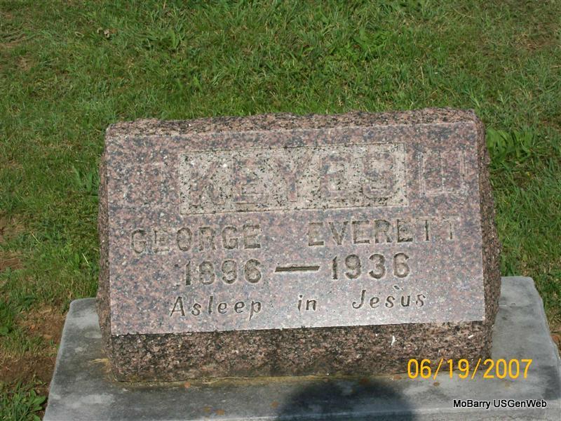 Research Note: The log book reads that this person is without a stone, and was buried May 3, 1935 and that Barry County purchased the cemetery lot. The grave is in the old section, in block 54, in a single lot, in grave 41. The death certificate for this person reads that this person's name was J. B. Keen and not J. B. Kern as the cemetery log has it. The cause of death was meningitis - streptococcus. His father was Jewel Keen, born KY and his mother Cora Thompson, born KS. Jewel Keen, Monett, MO, was the informant. Burial was on May 3, 1935 in IOOF. NO STONE | Death Certificate Donna Cooper IOOF Log Book Phyllis Long |