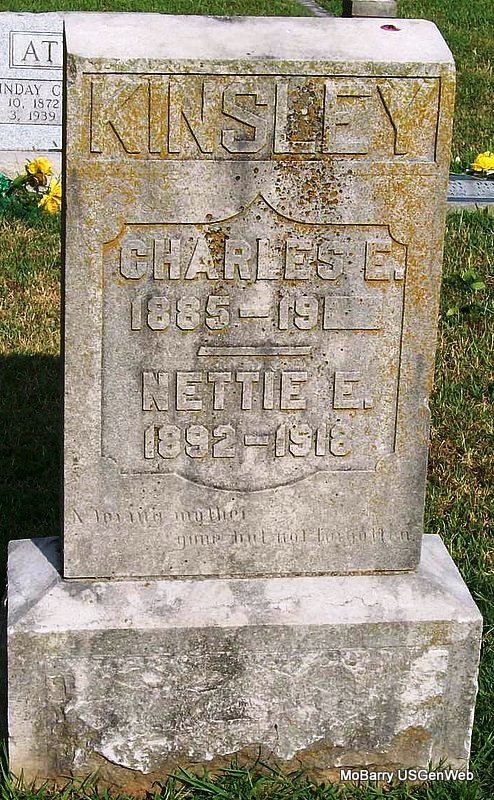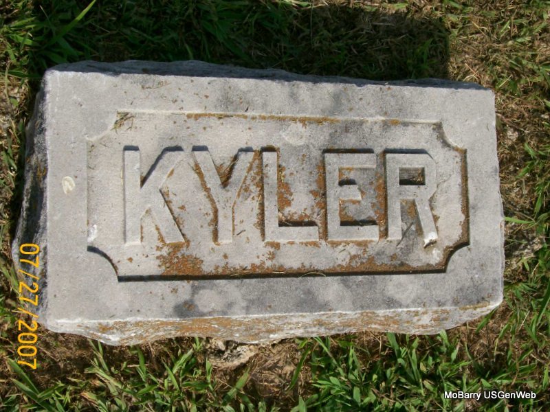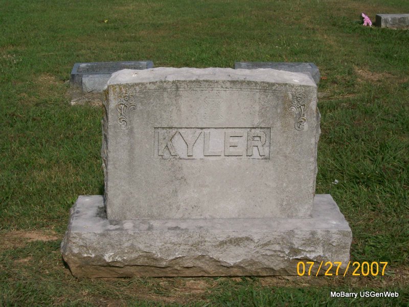 Research Note: According to his death certificate he was a retired engineer and age 70 years, 6 months and 25 days old at the time of his death. He was married and Mary Kyler was his wife's name. The cause of his death was carcinoma prostrate, uremia. His father was listed as Jesse Kyler, born IN, and his mother as Elizabeth Bonbrake, born Canton, Ohio. Mrs. Mary Kyler, Monett, MO, was the informant. - Kyler Plot Stone | Death Certificate Donna Cooper Photo Jay Trace |