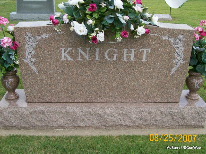 Research Note: the son of the late Myron and Matilda (Colson) Knight. He was united in marriage on July 15, 1944 in Washington D.C. to his first wife Arvilla Zelch ; she preceded him in death on November 10, 1992. He was then united in marriage on August 9, 1993 to Marion Young. He was the retired owner of Monett Floral and Monett Wholesale Greenhouse in Monett, a veteran of the United States Navy serving his country during World War II and was a member of the Chamber of Commerce in Monett and the Monett Lions Club. - Knight Plot Stone | Bennett-Wormington Funeral Home Phyllis Long Photo Jay Trace |