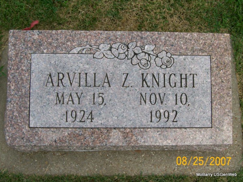 | KNIGHT, Arvilla Z. | May 15, 1924 | Nov. 10, 1992 | Knight Plot Stone | Photo Jay Trace |