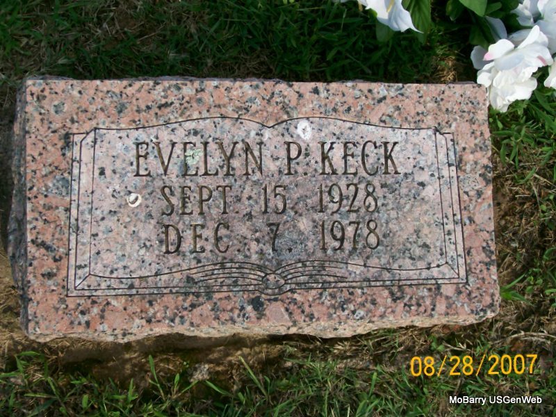 | KECK, Evelyn P. | Sept. 15, 1928 | Dec. 7, 1978 | Research Note: She is buried next to Irvin F. | Photo Jay Trace |