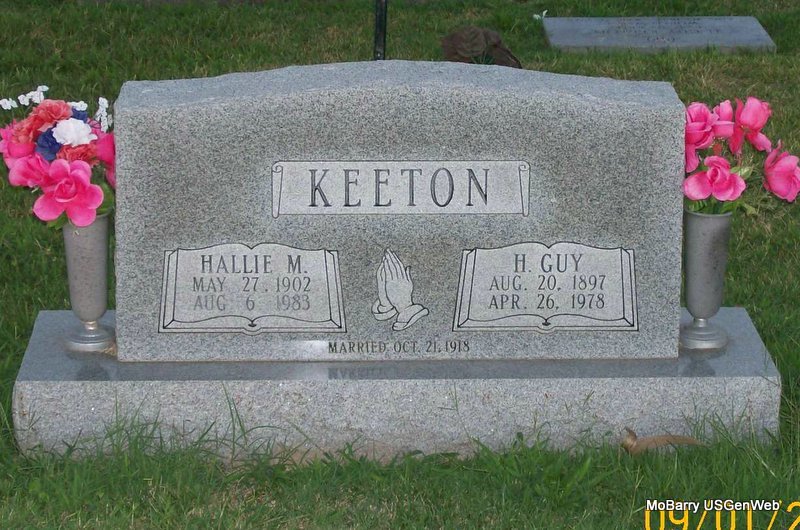 | KEETON, Hallie May (BECK) | May 27, 1902 | Aug. 6, 1983 | SSW: H. Guy - Inscription: "Married Oct. 21, 1918" - Research Note: Daughter of James Franklin Beck and Shada A. Qualls. - Another Photo | Census Phyllis Long Photos Jay Trace |