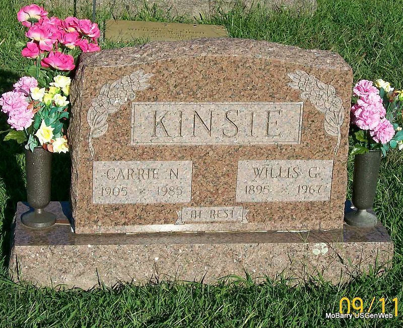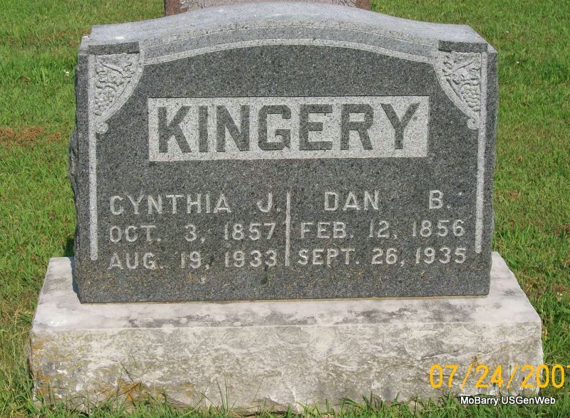 Research Note: Might actually be Bonebrake but spelled Bonbrake on her death certificate. It states that her husband was name Jess Kyler and that she was widowed. She was age 84 years, 4 months and 29 days old at the time of her death. The cause of death was apoplexy. Her father was given as Simon Bonbrake, born PA and her mother as Julia Shroyer, born PA and burial was in IOOF on June 10, 1928. R. B. Kyler, Monett, MO, was the informant. The cemetery log does not list that this person is without a stone. POSSIBLY NO STONE | Death Certificate Donna Cooper Photo Jay Trace |