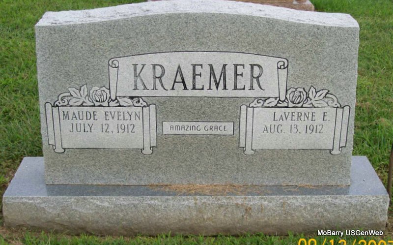 Research Note: LaVerne Kraemer, age 89, of Marionville, formerly of Monett, died Nov. 27, 2001, at Ozark Methodist Manor in Marionville following a long illness. He was born August 13, 1912, in Maryville, KS, and was a son of Albert and Bertha (King) Kraemer. He was retired in 1971 as a grocery store owner in Denver, Colorado. He married Maude Evelyn Foy on May 15, 1937, in Marysville, KS and was preceded in death by three brothers, Graydon Kraemer, Fenton Kraemer, and Everett Kraemer; and one sister, Nita Barlow. | Monett Times, Nov. 29, 2001 Donna Cooper Photo Jay Trace |