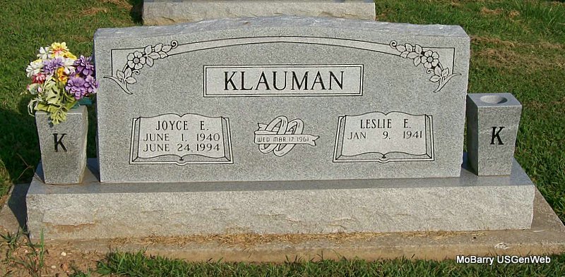 | KLAUMAN, Leslie E. | Jan. 9, 1941 | No Date | SSW: Joyce E. - Inscription: "Wed Mar. 17, 1961" | Photo Jay Trace |