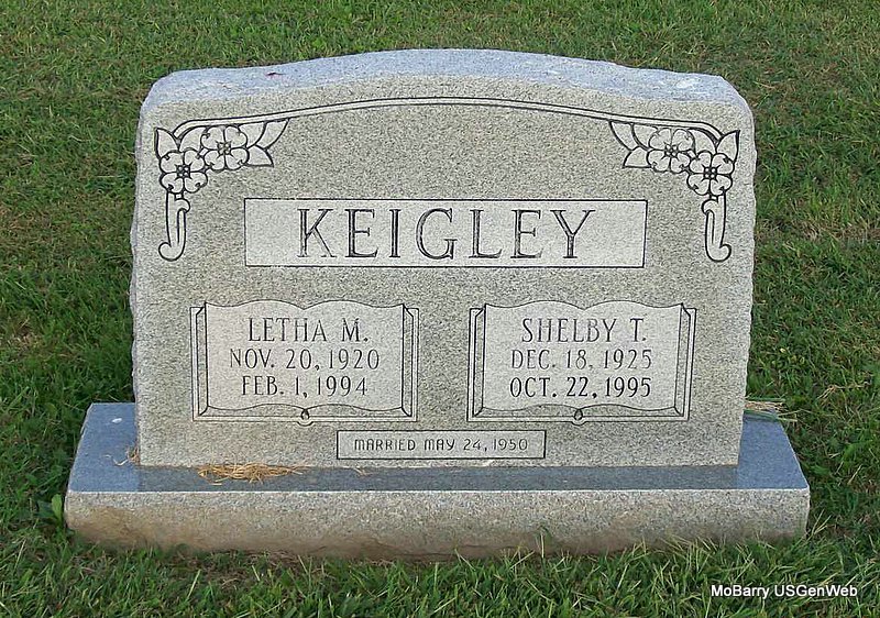 | KEIGLEY, Shelby T. | Dec. 18, 1925 | Oct. 22, 1995 | SSW: Letha M. - Inscription: "Married May 24, 1950" - Research Note: Son of Benjamin Thomas Keigley and Eva Jane (Ellis) (Keigley) Cates. | Census Phyllis Long Photo Jay Trace |