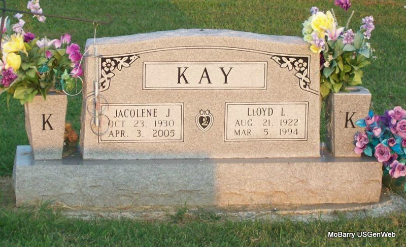 | KAY, Robert Franklin | Dec. 6, 1909 | Feb. 13, 1989 | SSW: Letha M. - Research Note: Son of Frank Kay and Myra Whaley. | Census Phyllis Long Photo Jay Trace |