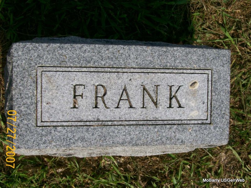 Research Note: According to his death certificate his death was caused by an accident at the Frisco Yard in Monett. He fell from a freight car. He was age 32 years, 5 months and 7 days old at the time of his death. Rainey B. Kyler, born IN, and Mary Row, born Carthage, MO, were his parents. He was a switchman for Frisco. His wife was named Lanora Kyler. R. B. Kyler, Monett, MO, was the informant. - Frank L. Kyler, age 25, married Lanora Isabelle Bayless, age 21, on May 2, 1925 in Joplin, Jasper Co., MO. SSDI: Lanora Kyler born Oct. 2, 1904 and died Jan. 1985 in Idaho Springs, Clear Creek Co., CO. Buried at Oak Hill cemetery, Cassville, MO. - Kyler Plot Stone | Death Certificate Donna Cooper MO Marriage Records SSDI Phyllis Long Photo Jay Trace |