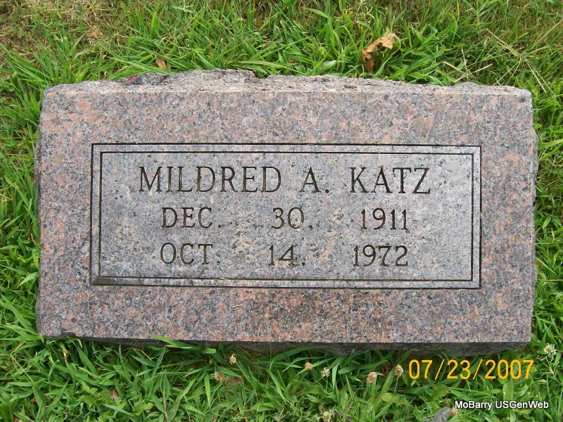 | KATZ, Mildred A. | Dec. 30, 1911 | Oct. 14, 1972 | No Data | Photo Jay Trace |