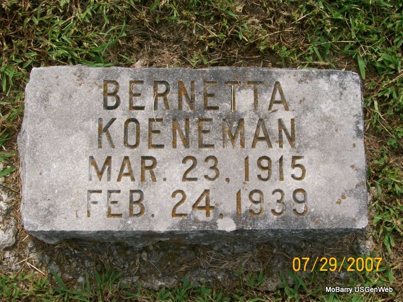 | KOENEMAN, Bernetta (COX) | Mar. 23, 1915 Monett, Barry Co., MO |