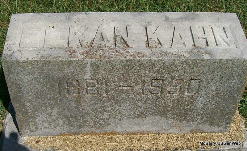 Research Note: His death certificate states that Isaac Kahn was his father and Flora Lehrburger was his mother. He never married. His usual address was Monett, Barry Co., MO and he was a dentist. He was never in the armed forces. The cause of death was given as hypertension, pyloric stenosis and cerebral hemorrhage. Merrah Kahn was the informant. Flora Kahn purchased the cemetery lot according to the City of Monett's log book. | Death Certificate IOOF Log Book Donna Cooper Photo Jay Trace |
