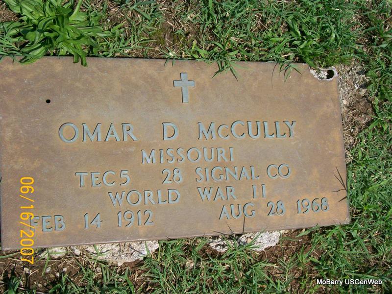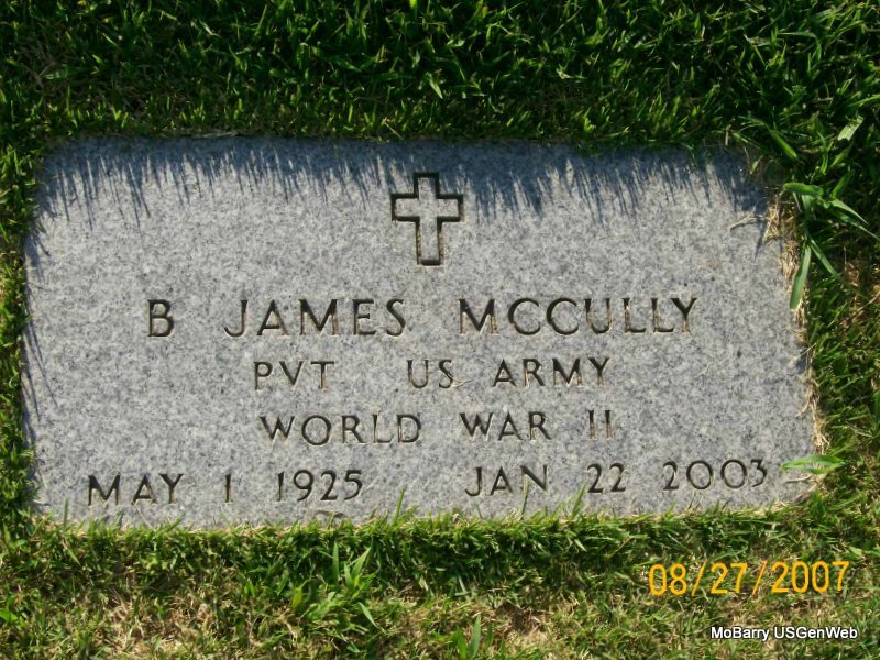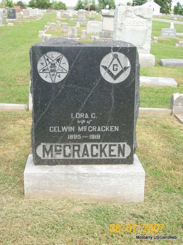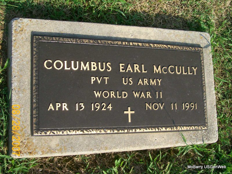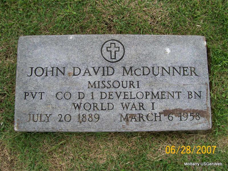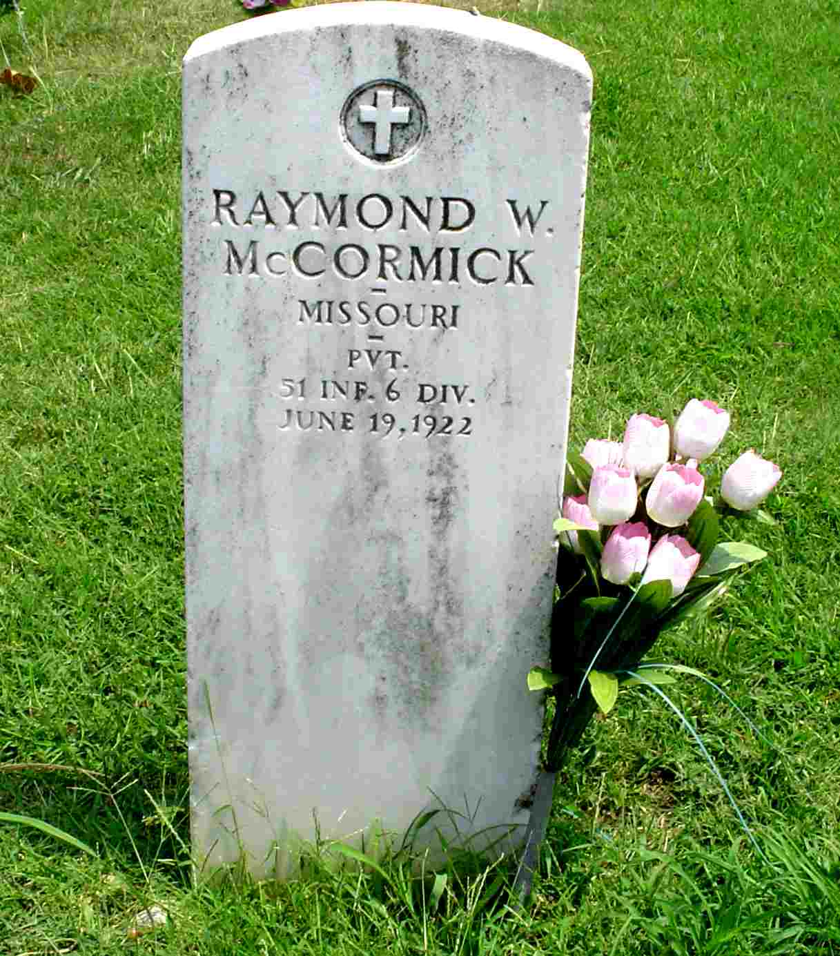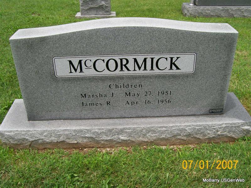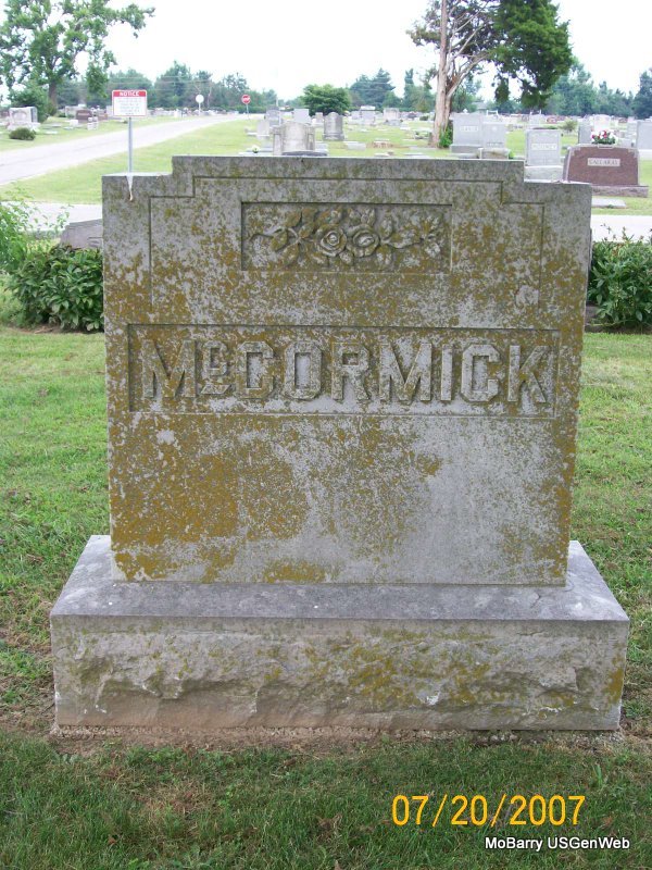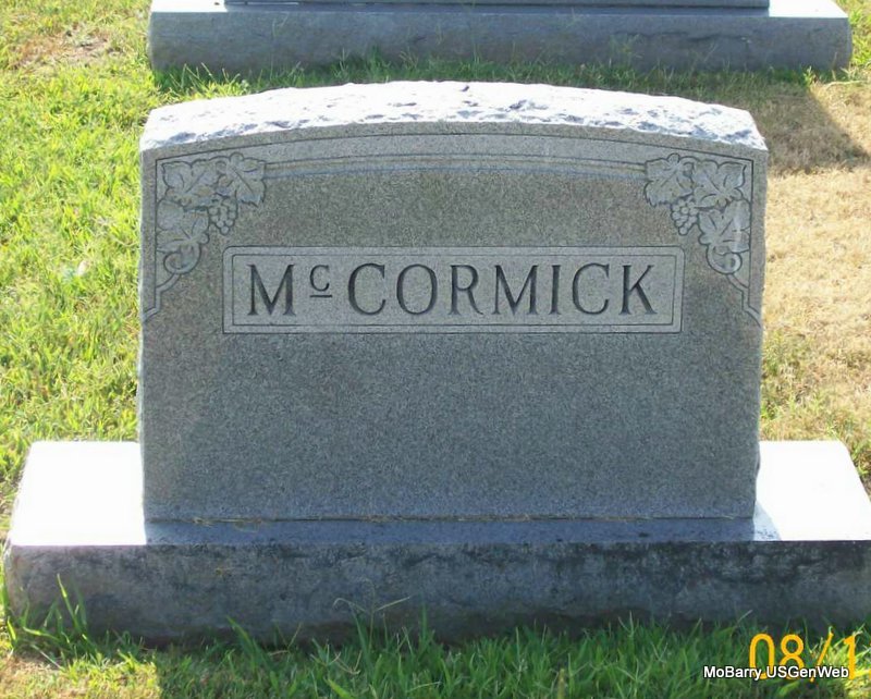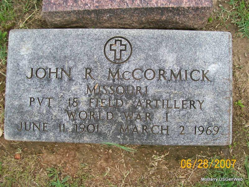 | MCCORMICK, John Raymond | June 11, 1901 | Mar. 2, 1969 | SSW: Addie - Military Stone - Inscription: "MISSOURI PVT 18 FIELD ARTILLERY WORLD WAR I" | Photos Jay Trace |