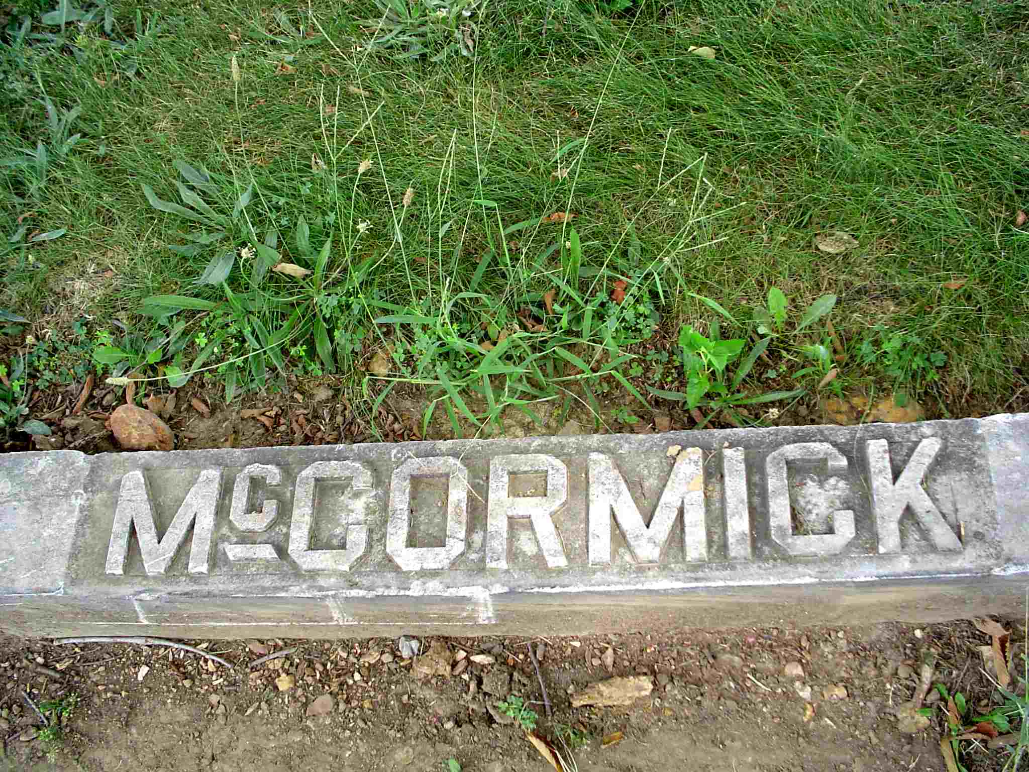 | MCCORMICK, Reames Robert | 1874 | Feb. 1949 | Research Note: The log book reads that he was buried Feb. 6, 1949. His wife was Lillian B. Terry. Son of Joseph McCormick and Juda Willis Lambert. - McCormick Plot Stone | IOOF Log Book Donna Cooper Census Phyllis Long Photo Jay Trace |