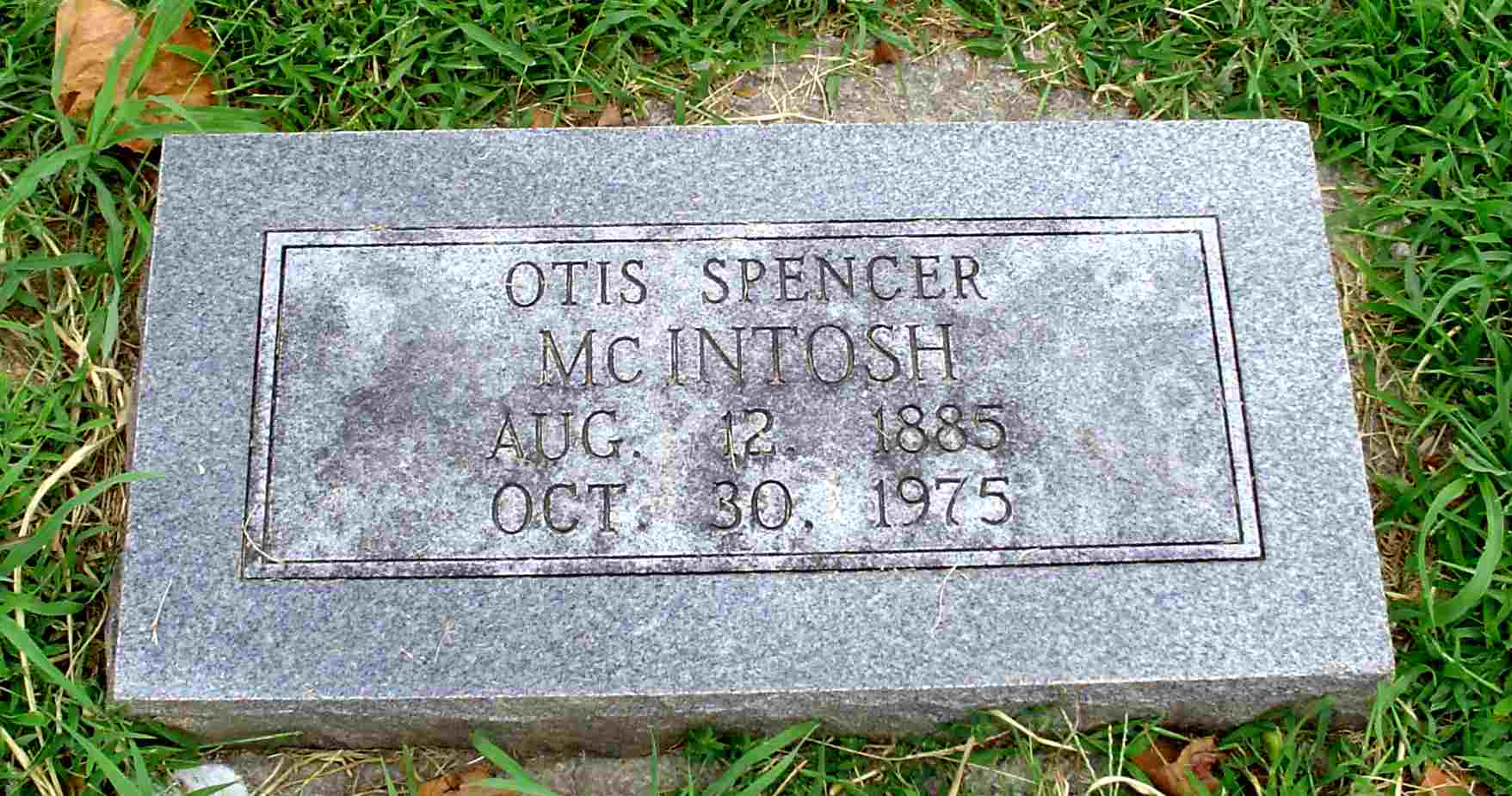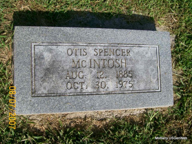 | MCINTOSH, Otis Spencer | Aug. 12, 1885 | Oct. 30, 1975 | Research Note: Son of George W. McIntosh and Alice Louise Wallen. Still single and living with his father in the 1940 census. - McIntosh Plot Stone - Plot Stone - Another Photo | Census Phyllis Long Photo Donna Cooper Photo Jay Trace |