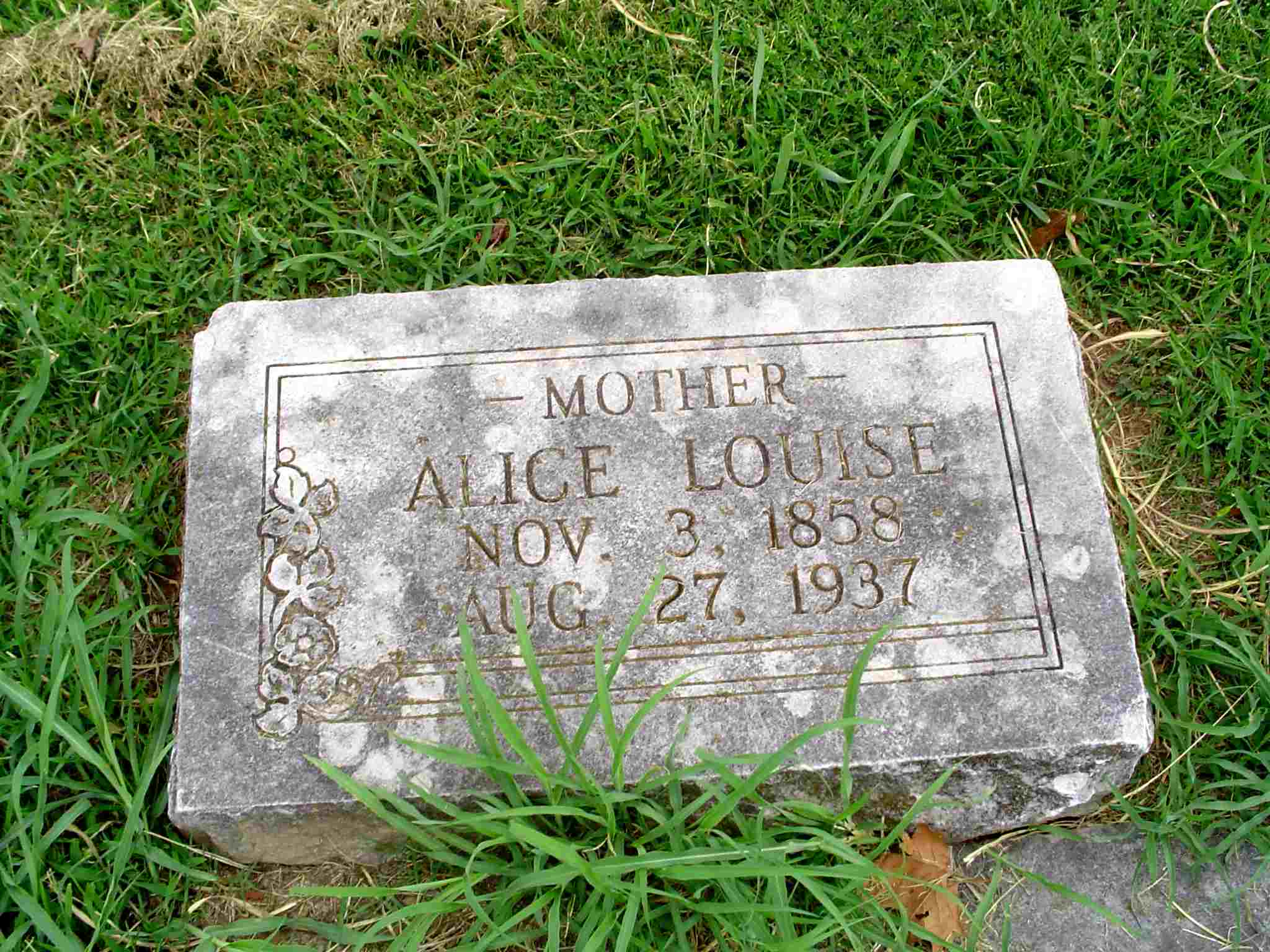 Research Note: Her death certificate reads that her name was spelled McAlister and not McAlster as logged on the cemetery log book. She is logged as buried in the old section, in block 8, in lot 3, in grave 4, in N 1/2 and was buried Sept. 13, 1923 without a stone. Her death certificate reads she was married, and her husband's name wasn't given. Her parents names or where they were born weren't given. The cause of death was given that she had taken carbolic acid?. Dr. J. L. McAlister, Walnut Hill, MO, was the informant. NO STONE | Death Certificate IOOF Log Book Donna Cooper |