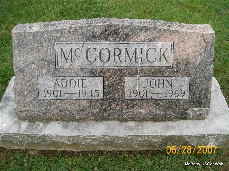 | MCCORMICK, Addie Mae (WILSON) | July 24, 1901 Monett, MO |
