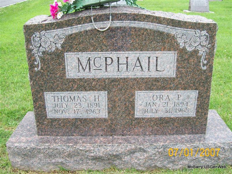 | MCPHAIL, Thomas Harrison | July 23, 1891 Purdy, Barry Co., MO |