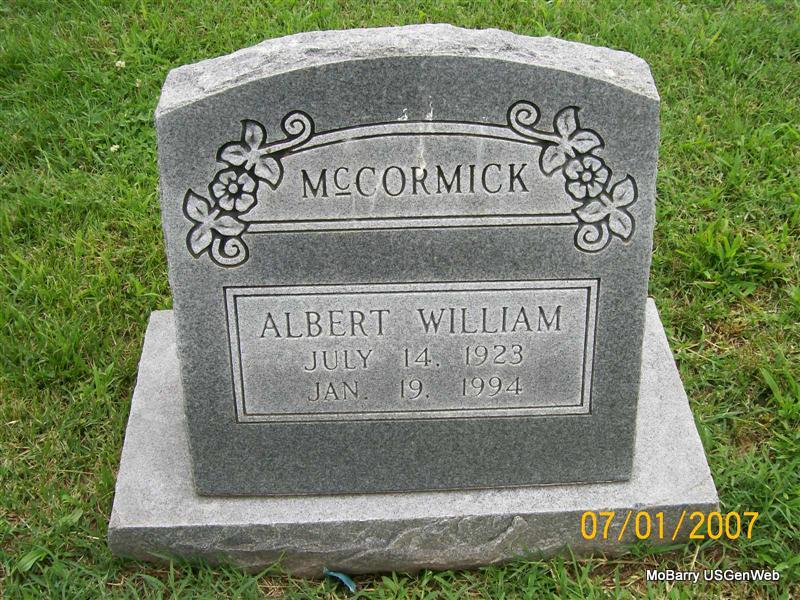 | MCCORMICK, Albert William | July 14, 1923 | Jan. 19, 1994 | Research Note: Son of Amos Albert McCormick and Eula Martha Henderson. | Census Phyllis Long Photo Jay Trace |