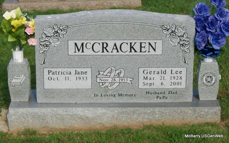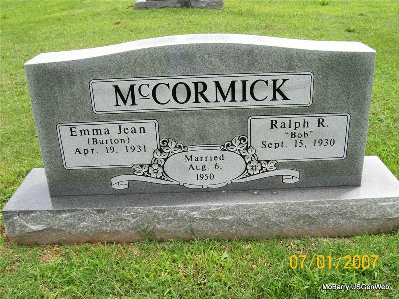 | MCCORMICK, Ralph R. | Sept. 15, 1930 | No Date | SSW: Emma Jean (Burton) - Inscription: "Married Aug. 6, 1950" - Back of Stone | Photos Jay Trace |