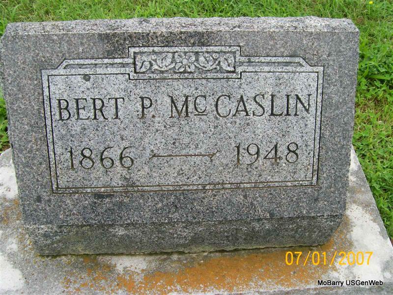 SSW: Pearl M. - Research Note:His death certificate lists his father as Bert McCaslin and his mother as Moss Murray (Murray was her mother's maiden name, should be Claiborne). He was married. His wife's name is not listed. Informant was Mrs. O. B. McCaslin. He was a Brakeman for the railroad. Cause of death is listed as Coronary Thrombosis. Date of burial was Mar. 1, 1957. At the time of death he was 67 yrs and 2 days old. - Another Photo | Death Certificate Gayle Wilcox Photo Donna Cooper Photo Jay Trace |