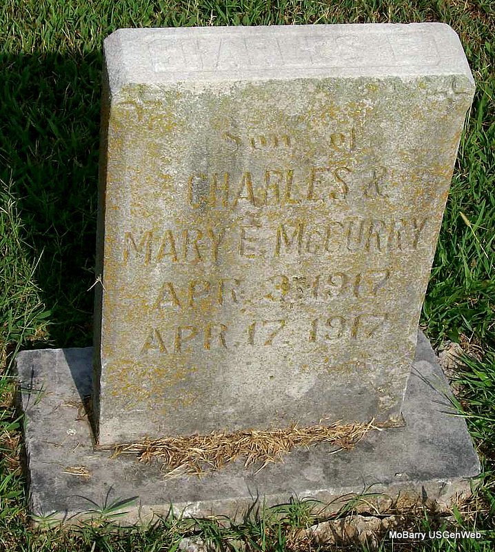 Research Note: The cemetery log book has that this person was buried Aug. 31, 1931, and is without a stone, but they have the name logged as McMemany. On the death certificate and on the Callaway record his father was given as E. C. McMenomy born Ft. Scott, KS, and his mother was Frankie Davenport. The Callaway record reads that he was born and died on the same day and had no stone. The cemetery log book reads that he was buried in the old section, in block 1, in a single lot in grave 28, and is buried in the same location as Esther Marie was, and in the same grave according to the record. His death certificate reads that he was born on the 30th and was buried on the 31st. The parents names and other data match with Callaway's records. NO STONE | Death Certificate Callaway Funeral Home IOOF Log Book Donna Cooper |