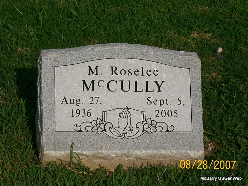 SSW: Clyde S. - Research Note: Mary was one of 10 children born to B.E. and Ida (Ellis) Crossland. Mary graduated from Aurora High School in 1942. During WWII she worked at an ammunition plant in Tulsa, Oklahoma contributing her part to the war effort. On October 4, 1946 she married Clyde S. McKee. He preceded her in death on December 17, 1994. One daughter was born to this union. Mary was co-owner of the McKee Maytag Appliance Store in Monett, Missouri. She also helped and worked along side her husband on the McKee Farms. Mary was also preceded in death by her step-son: Sonny McKee and step-daughter: Jo Ann Grove, four brothers: Henry, Bert, Jim and Charles Crossland, four sisters: Naomi Crider, Viola Edwards Froese, Anna Maples and Alice Rinker and one dear friend, Harlan Barekman. | Bennett-Wormington Funeral Home Phyllis Long Photo Jay Trace |