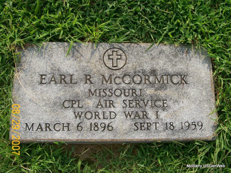| MCCORMICK, Earl Robert | Mar. 6, 1896 Monett, Barry Co., MO |