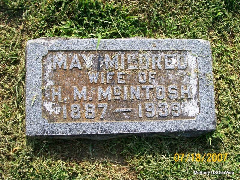 | MCINTOSH, May Mildred (PETERS) | 1887 | Oct. 1939 Barry Co., MO |