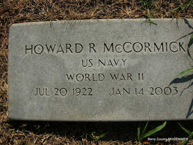 | MCCORMICK, Howard Roy | July 20, 1922 Monett, Barry Co., MO |