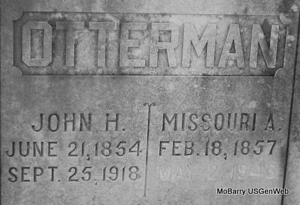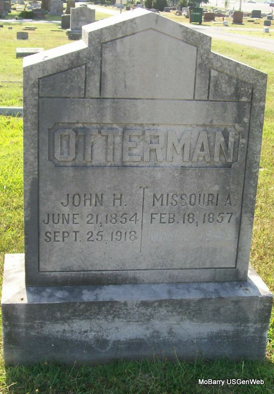 SSW: John H. - Research Note: According to his death certificate his occupation was a carpenter contractor. He was a son of Andrew J. Otterman born IN and Henrietta Morrison born MO. O. O. Otterman of Monett, MO was the informant. Married, no wife named. Cause of death, Bright's Disease. - Patrons' Reference Directory Of Barry County, Missouri - Otterman, J. H., Contractor and Builder, Dealer in Building Materials and Paints, Monett. 1887. - Cassville Republican, April 3, 1913 - Barry County vs. T. F. Montgomery, E. B. Holman, and J. H. Otterman, wrongful expenditure of funds change of venue filed. - July 31, 1913, Thursday, Cassville Republican - According to the Springfield papers, the case of Barry County vs. Thos. F. Montgomery, E. B. Holman and J. H. Otterman was field last week in the Greene County circuit court on a change of venue from this county. The case will be docketed for the September term of circuit court. - Another Photo | Death Certificate Online Newspapers Phyllis Long Photo Jay Trace |