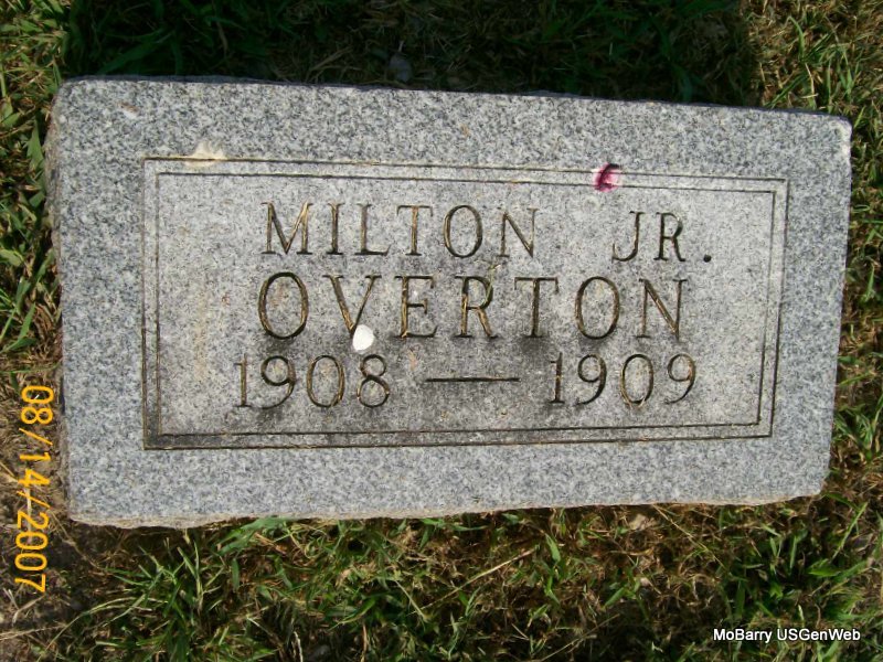 | OVERTON, Milton, Jr. | 1908 | 1909 | Research Note: Probably the son of Milton Sr. and Gertrude Overton. Milton Sr. was the son of J. J. Overton and Laura Antle. | Census Phyllis Long Photo Jay Trace |
