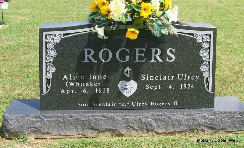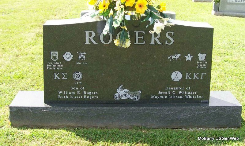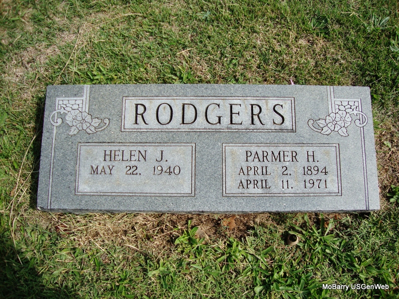 SSW: Helen J. - Research Note: The log reads that he is buried in the 2nd section in block 21, in lot 4 in grave 1 in the SW 1/4. He was a veteran and Helen Rodgers was the lot owner. Son of Charles Henry Rodgers and Sarah Ann Garner. His wife was Helen Hopple and she was the informant on the death certificate. Cause of death was listed as natural causes, died near the car on the road near Verona, MO. Monett, Barry Co., MO resident. - Parmer Rodgers, age 19, married first, Lola Lundy, age 18, on Feb. 3, 1914 in Lawrence Co., MO. Henry Rodgers, father of Parmer, gave consent. Lola is still with him in the 1940 census, reportedly died in 1961 and is buried in Lawrence Co., MO. At age 47, Parmer married Leona Rhodes, age 35 on Sept. 17, 1941 in Christian Co., MO. Parmer third married Helen Joy Hopple on July 8, 1962 in Monett, Barry Co., MO. | MO Marriage Records Census Death Certificate Phyllis Long IOOF Log Book Donna Cooper Photo Connie Schmidt |