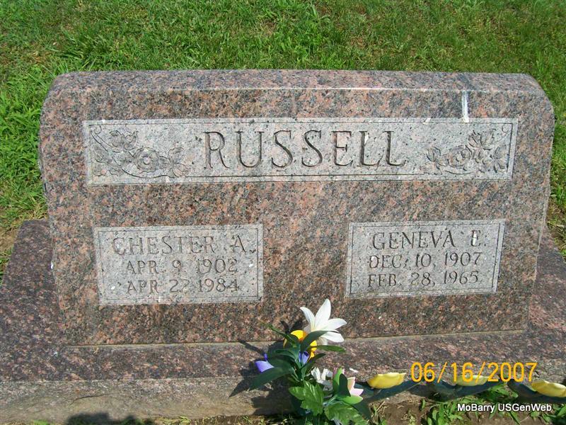 | RUSSELL, Chester A. | Apr. 9, 1902 | Apr. 22, 1984 | SSW: Geneva E. | Photo Jay Trace |