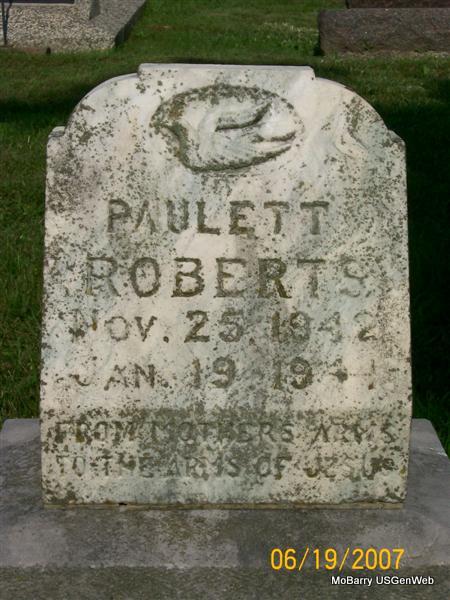 | ROBERTS, Paulette | Nov. 25, 1942 | Jan. 19, 1944 | Inscription: "From Mother's Arm to the Arms of Jesus" - Another Stone | Photos Jay Trace |