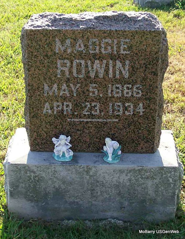 Inscription: "Mother" - Research Note: She is buried next to Joseph M. Robinson, her husband (his first wife). Her death certificate reads that David Brown, born Ohio, was her father and Elizabeth Nelson, born IN, was her mother. She was married, age 41 years, 5 months and 7 days old. She was a resident of Monett, MO. | Death Certificate Donna Cooper Photo Jay Trace |