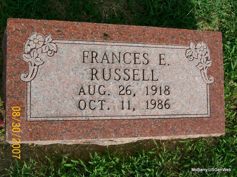 | RUSSELL, Elsie Florence (SPILLMAN) | Aug. 6, 1879 Lawrence Co., MO |