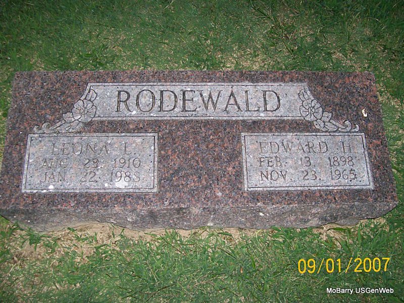 | RODEWALD, Leona L. | Aug. 23, 1910 | Jan. 22, 1988 | SSW: Edward H. | Photo Jay Trace |