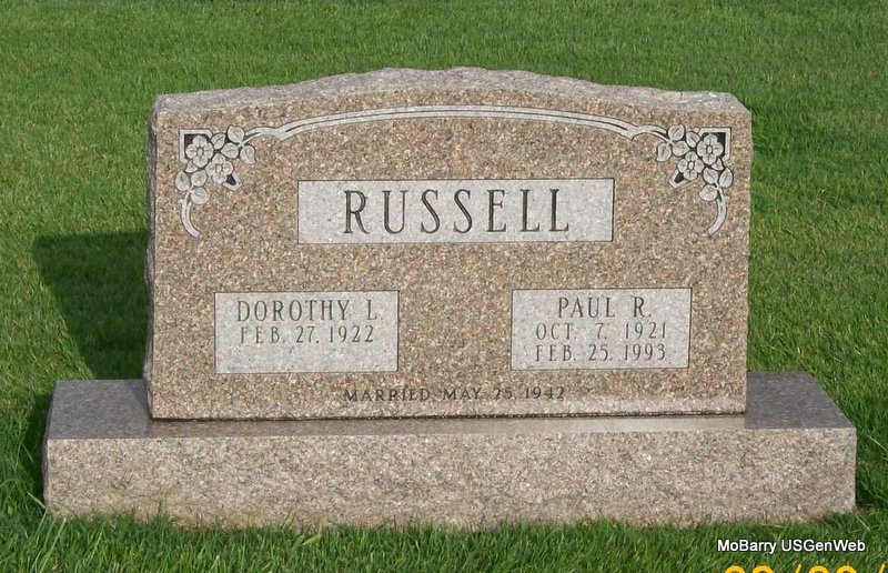 | RUSSELL, Dorothy L. | Feb. 27, 1922 | No Date | SSW: Paul R. - Inscription: "Married May 25, 1942" | Photo Jay Trace |