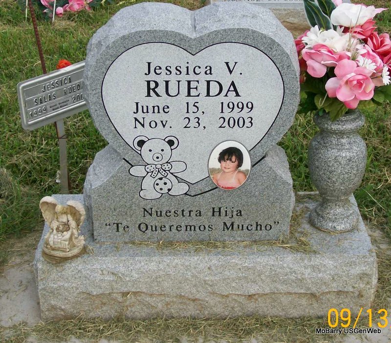 | RUEDA, Jessica V. | June 15, 1999 | Nov. 23, 2003 | Inscription: "Nuestra Hija - Te Queremos Mucho" - Research Note: Stone has a photo of her on it. | Photo Jay Trace |